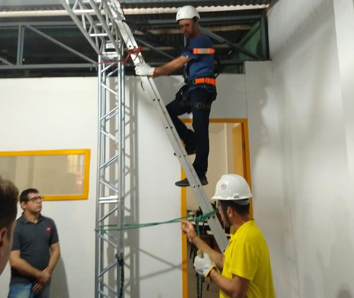 - Simulações: Utilização de recursos audiovisuais e equipamentos para simular situações de risco em trabalhos em altura, permitindo aos alunos vivenciar na prática os procedimentos de segurança.